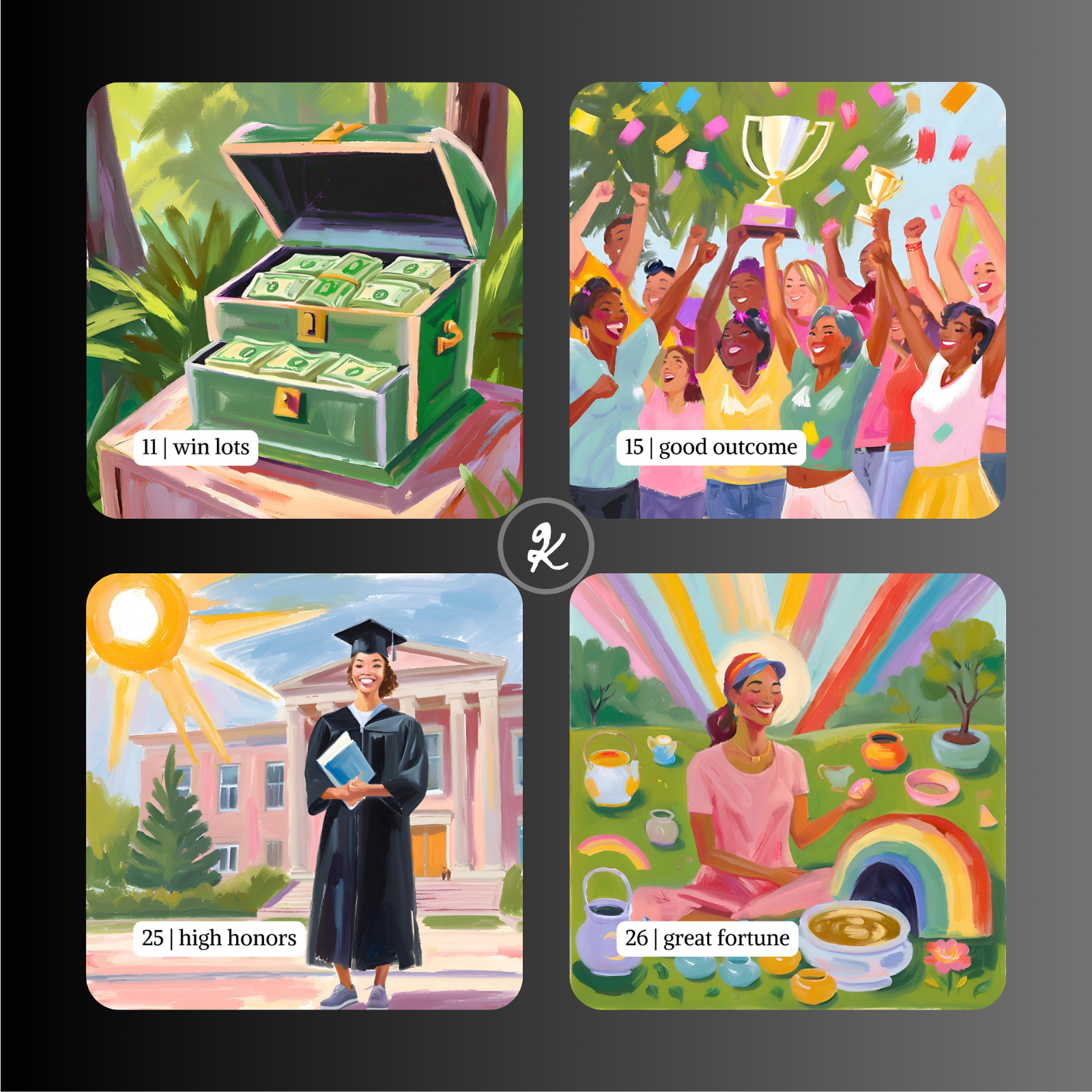 Un sistema homogéneo para leer Lenormand + Kipper juntos, con estética explosiva y artística tipo óleo.